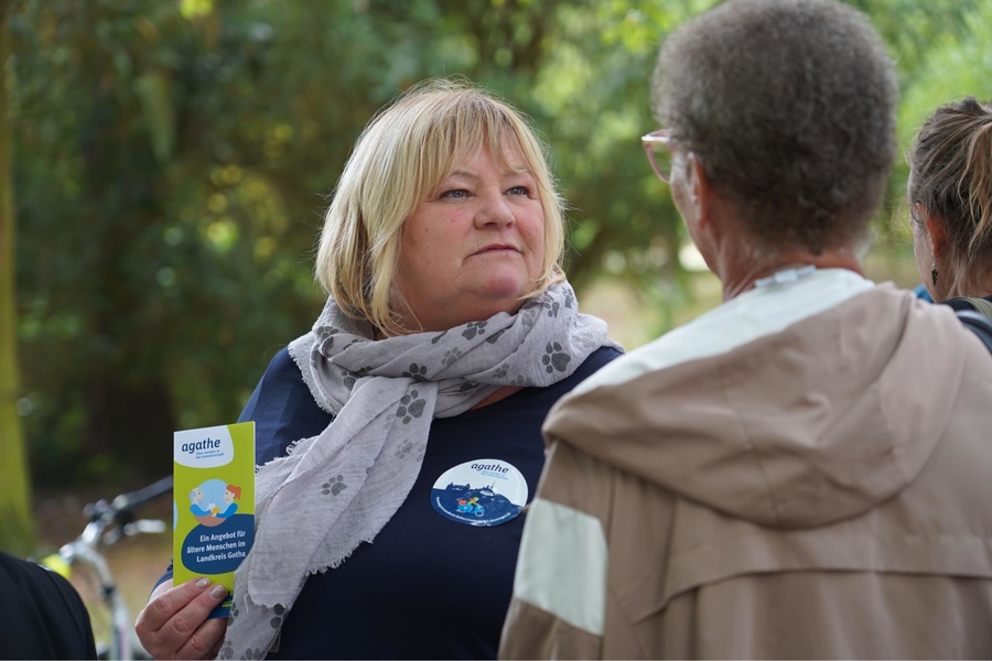 Allein im Landkreis Gotha leben rund 41.000 Menschen, die 63 Jahre oder älter sind. Über 13.000 von ihnen wohnen allein. Um sie zu erreichen, wurden unter anderem Informationsveranstaltungen angeboten, Flyer gedruckt und persönliche Anschreiben des Landrates verschickt. Parallel dazu sind die AGATHE-Fachkräfte unterwegs, um sich in der Region zu vernetzen. So haben sie bis Juni 2025 Kontakt zu insgesamt 242 (potentiellen) Kooperationspartnern aufgenommen. Auch innerhalb des Landratsamtes haben sich Synergien ergeben. Die Fachkräfte arbeiten unter anderem eng mit der Betreuungsbehörde und dem Sozialpsychiatrischen Dienst zusammen. Auch die TAG Wohnen und Service GmbH Erfurt (TAG) hat mit dem Landkreis eine Kooperation zur Unterstützung des Programms. Für die Einrichtung eines AGATHE-Standortes stellt die TAG in Gotha-West Räumlichkeiten zur Verfügung.